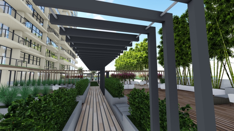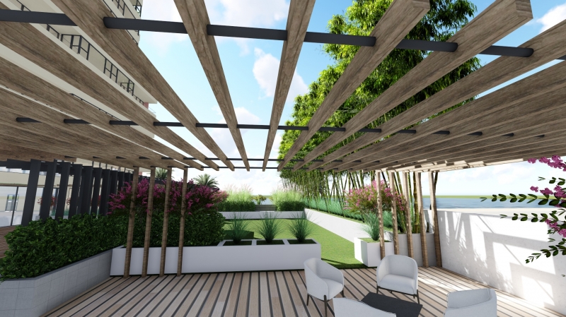 The project implements state-of-the-art and innovative systems such as aircraft grade aluminum canopies with motorized (remote controlled) adjustable louvers with rain sensors (for automatic closing upon inclement weather), decorative glass openings for offices, café, stores and temporary space reconfiguration for various events type.
